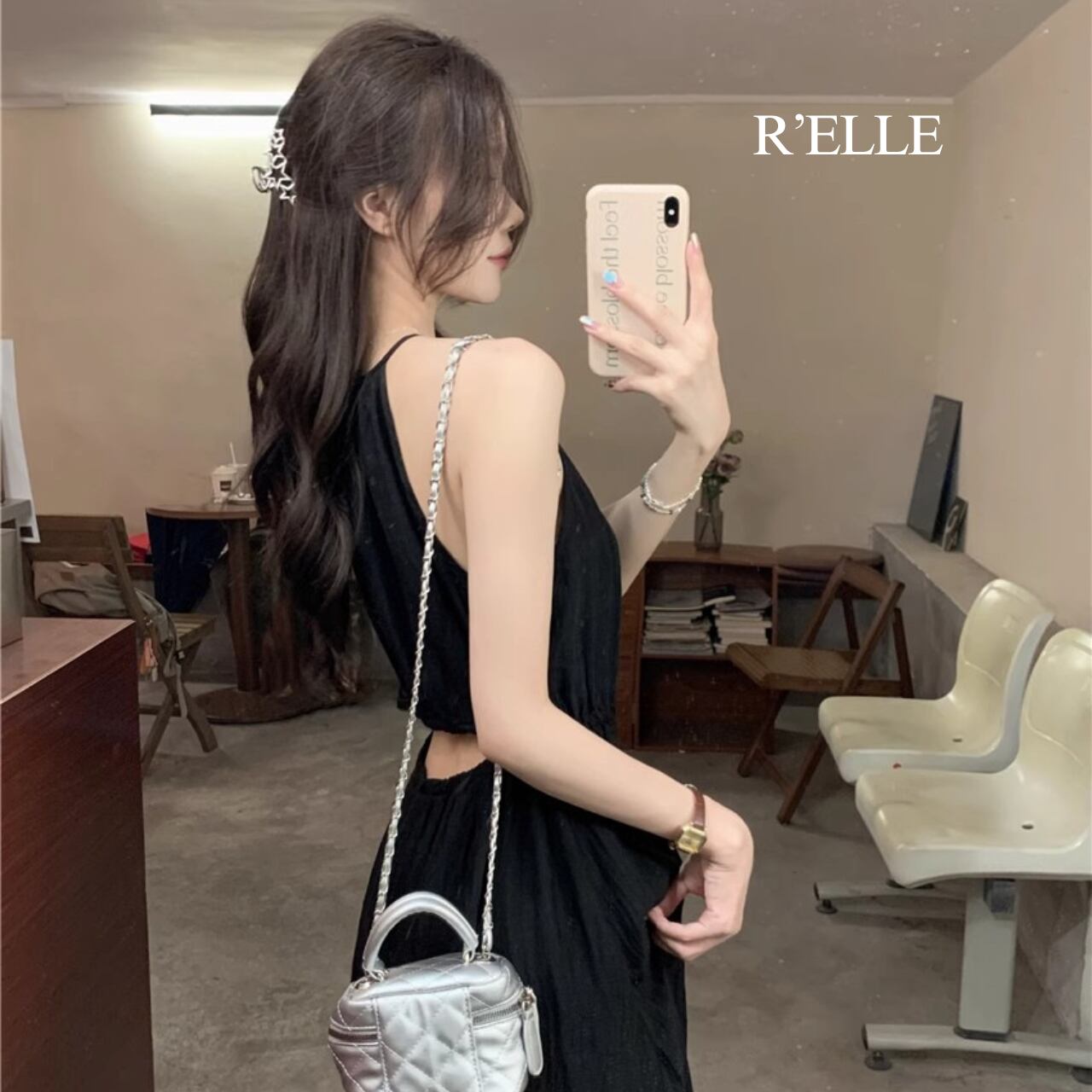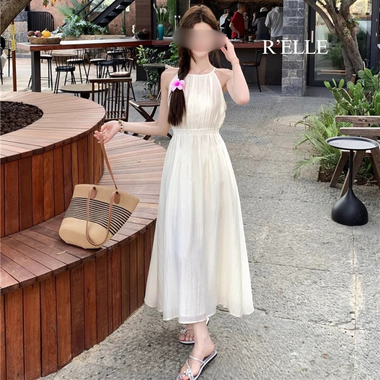 エレガントホルターネック・プリーツAラインワンピース