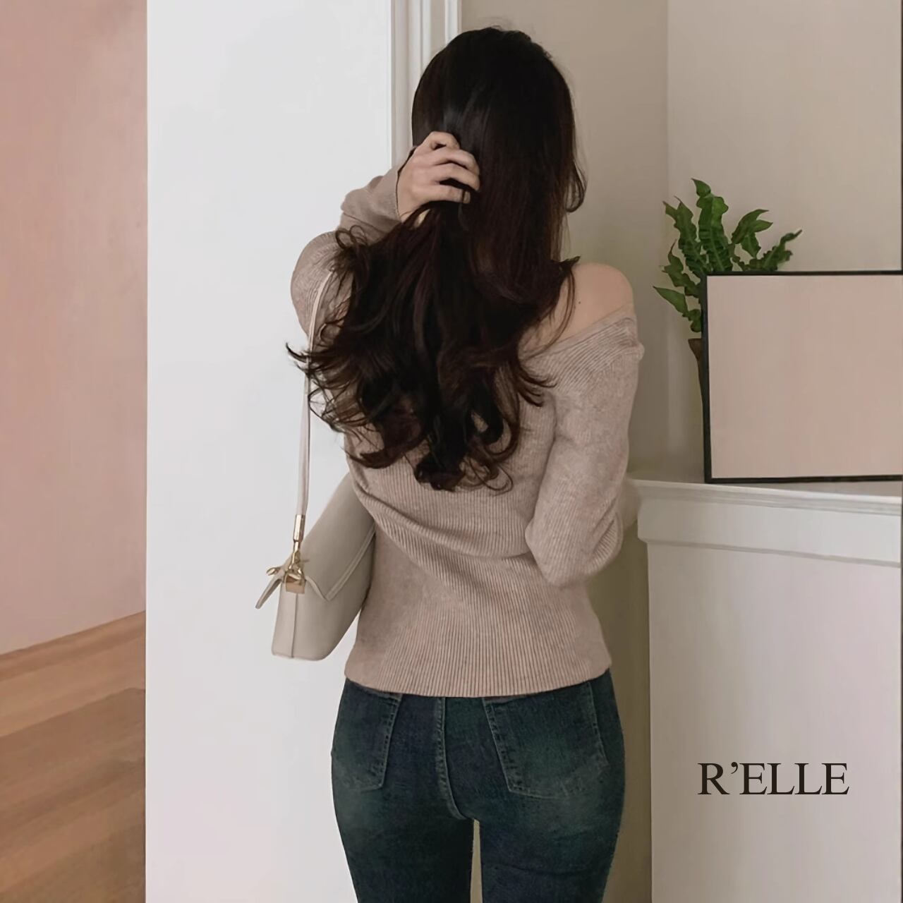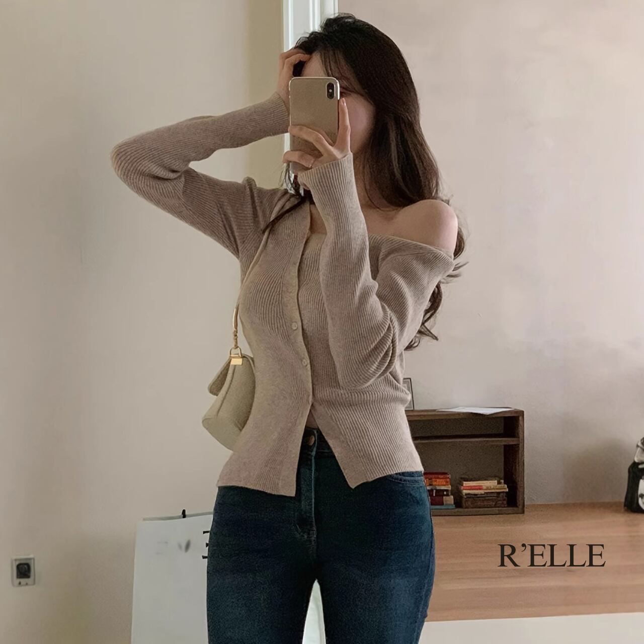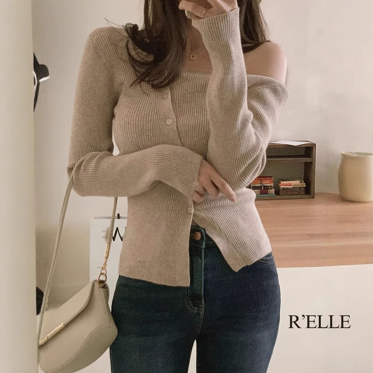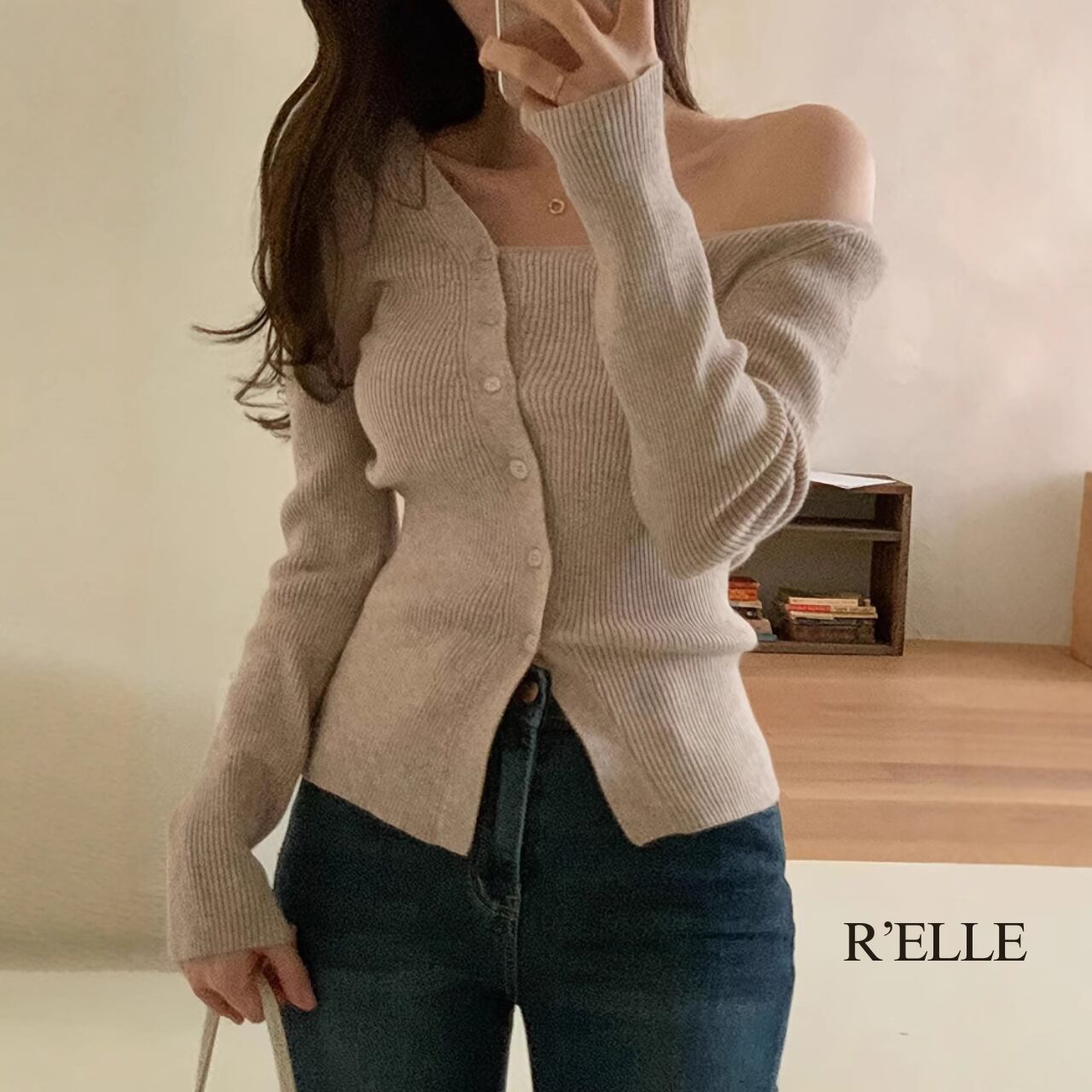 オフショルダーリブカーディガン