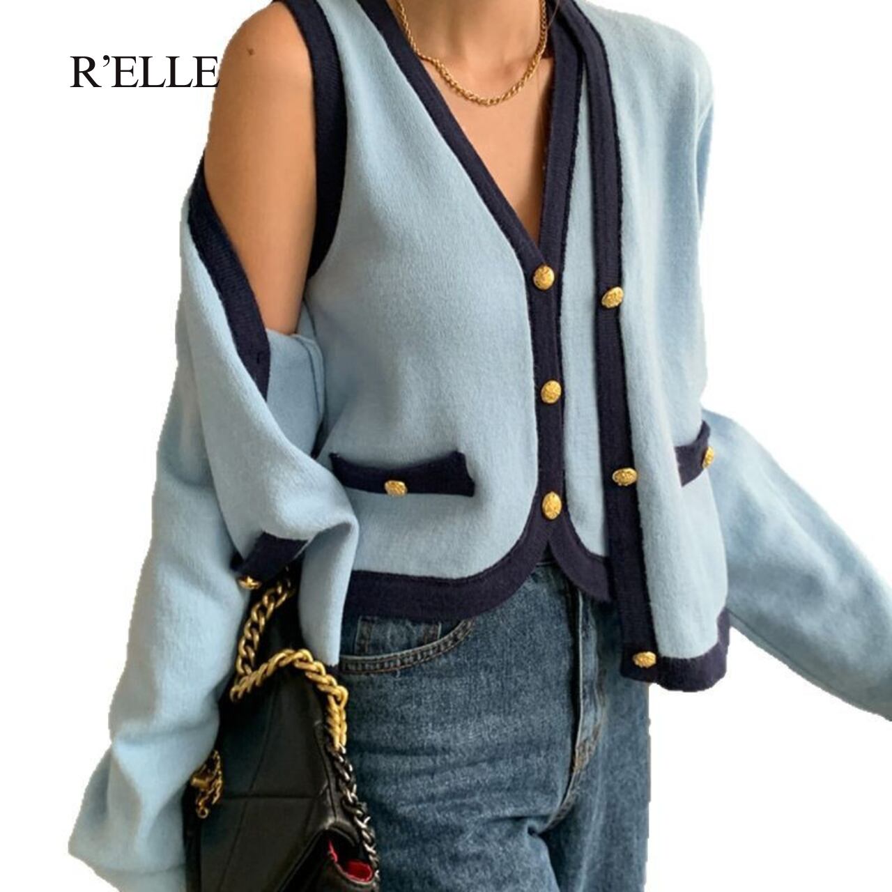 Vネックニットアンサンブル(カーディガン&トップスセット)