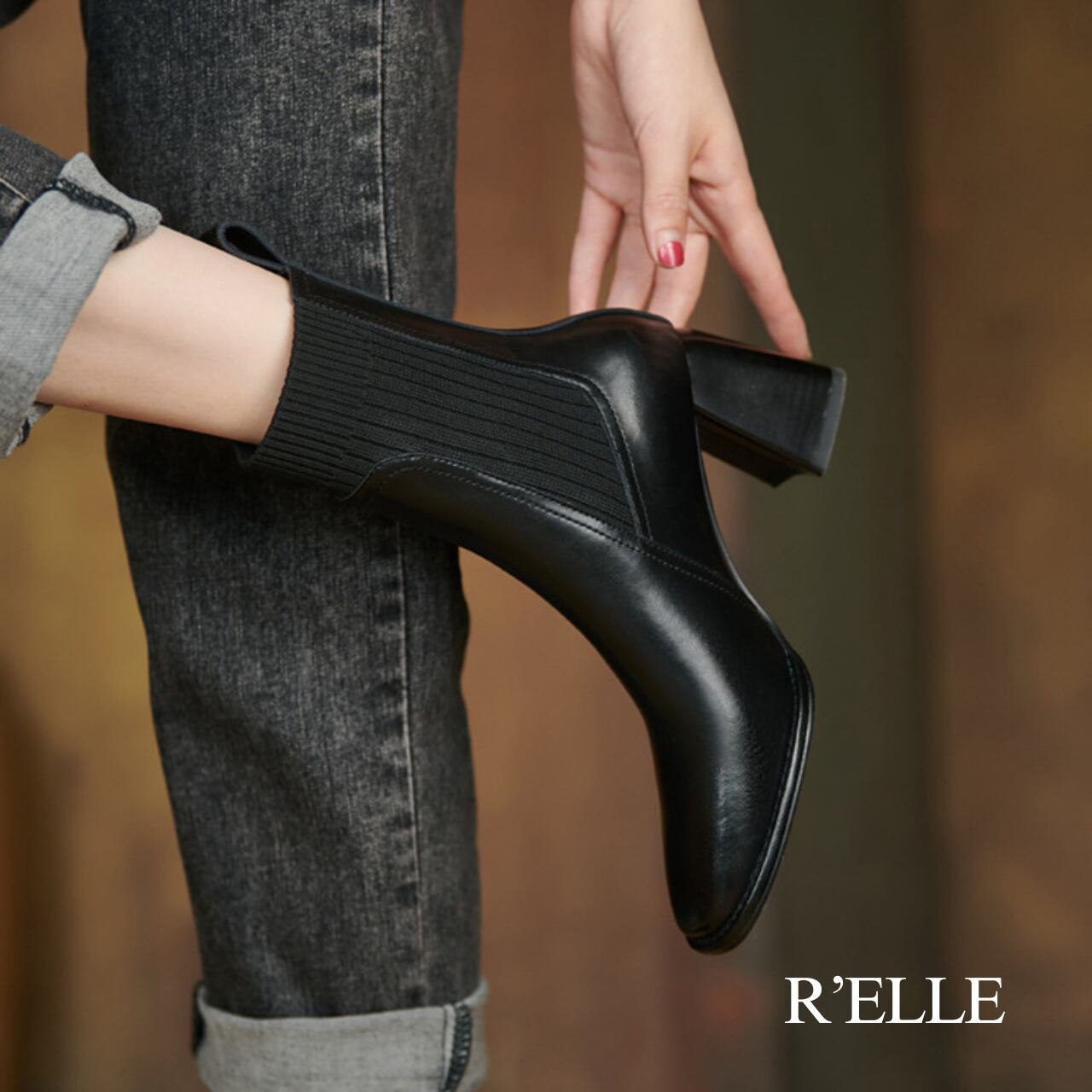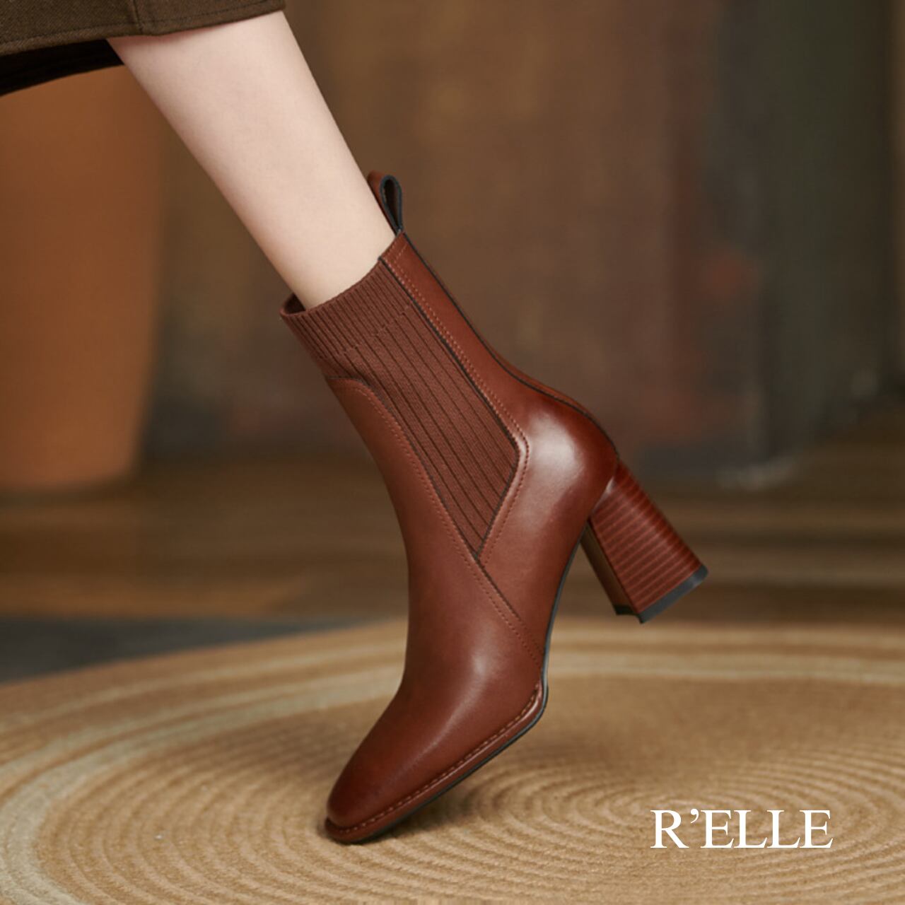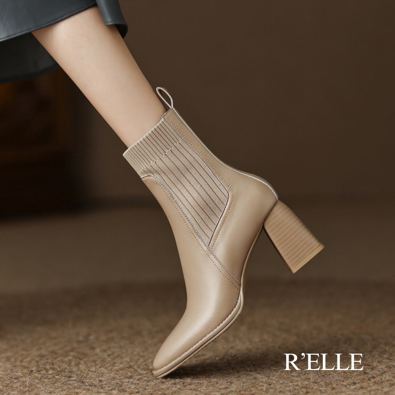 ニットソックスデザイン 本革ブーツ