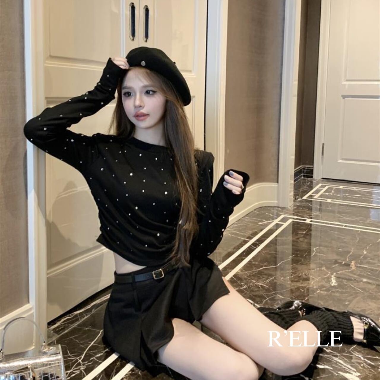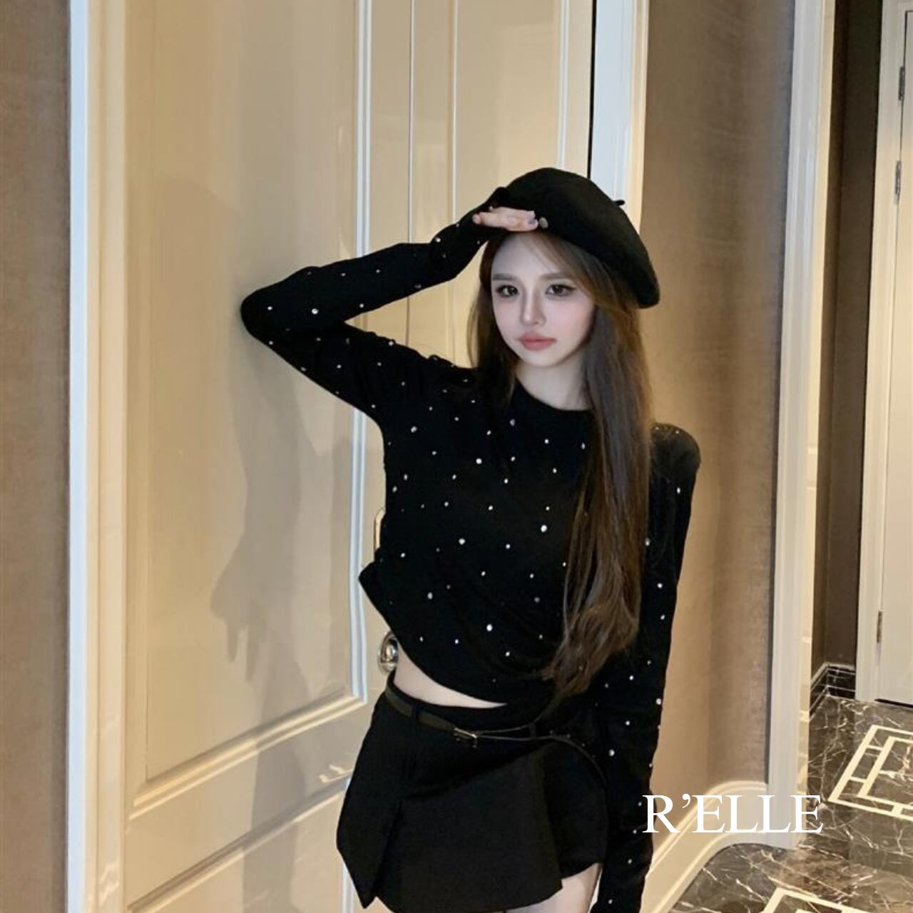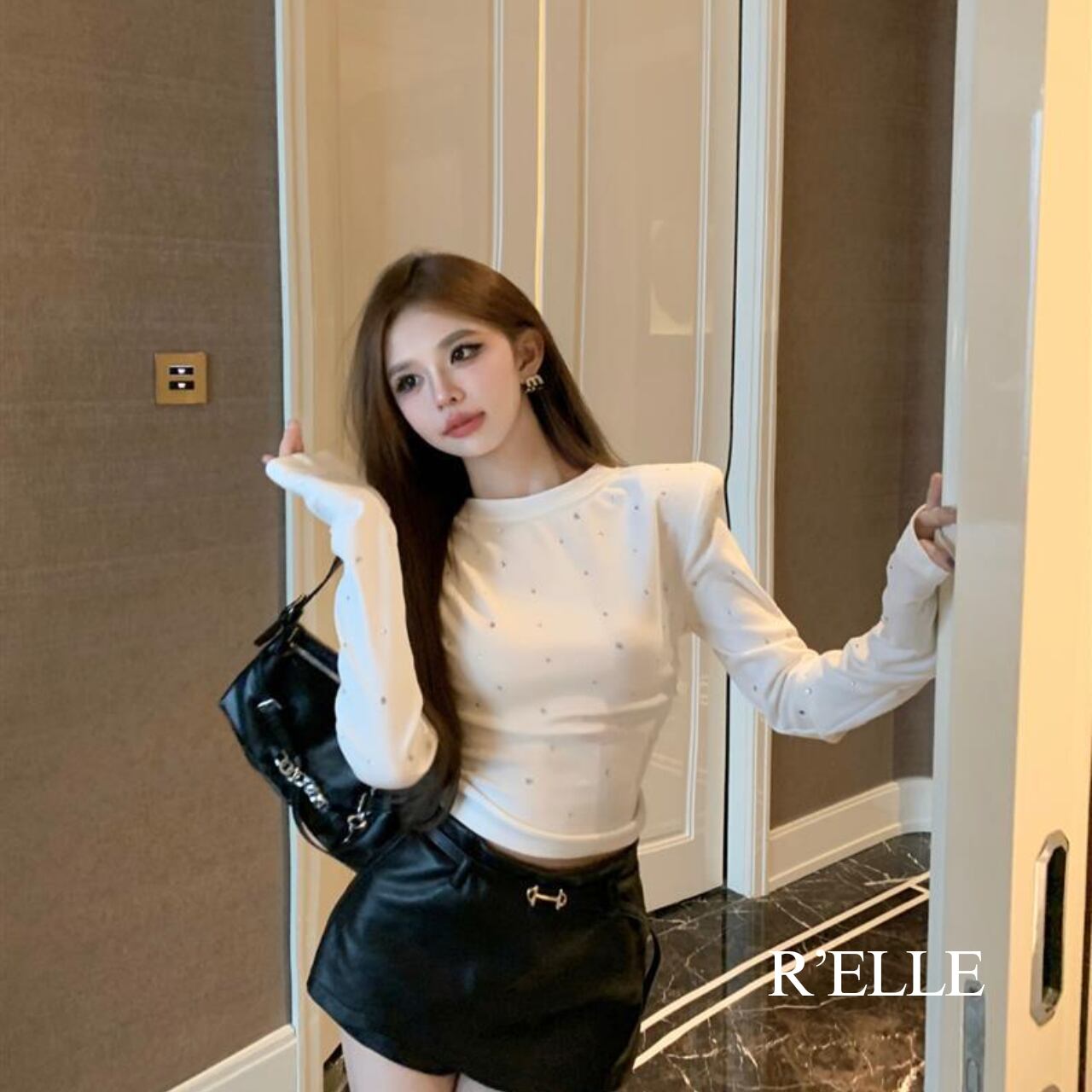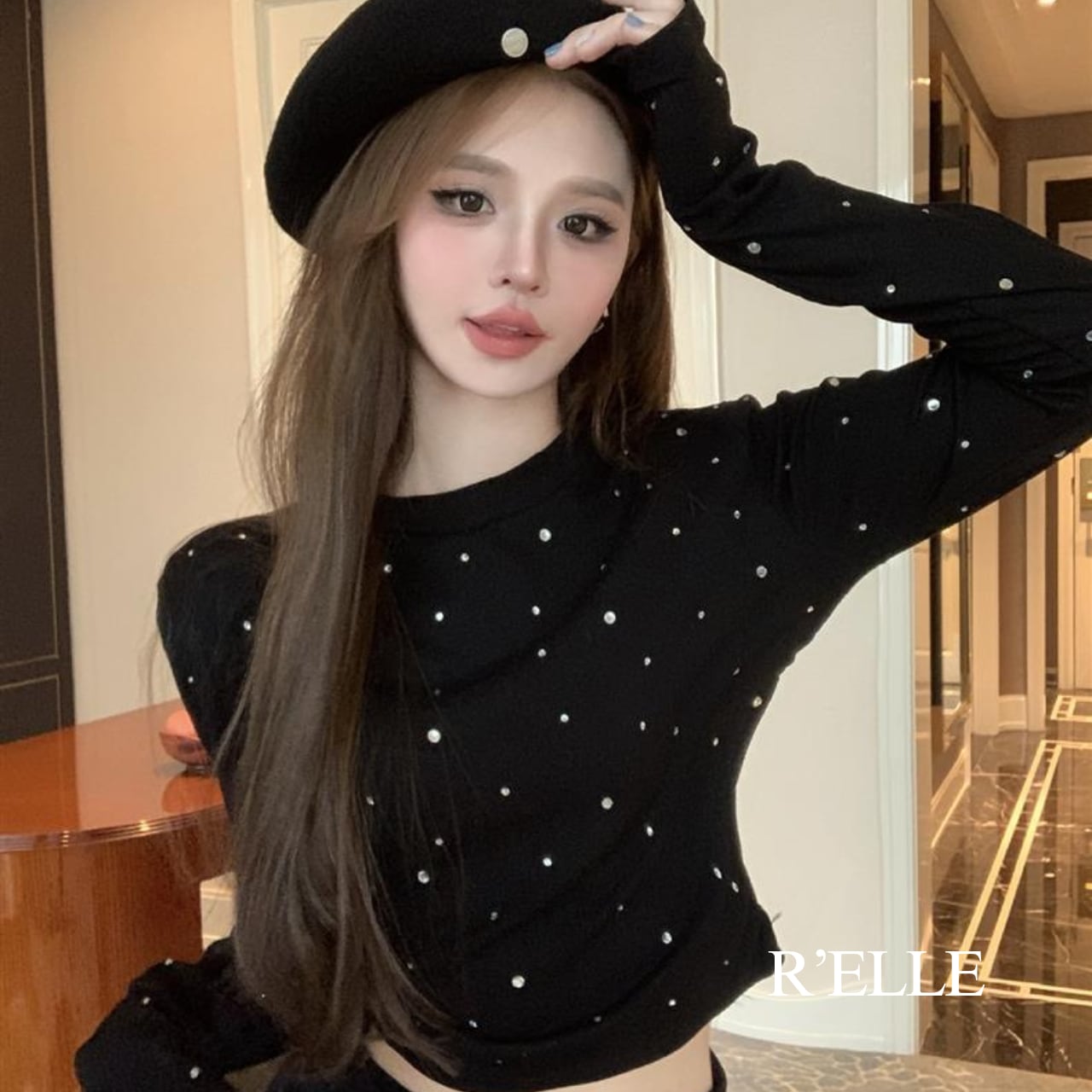 ラインストーン 長袖カットソー