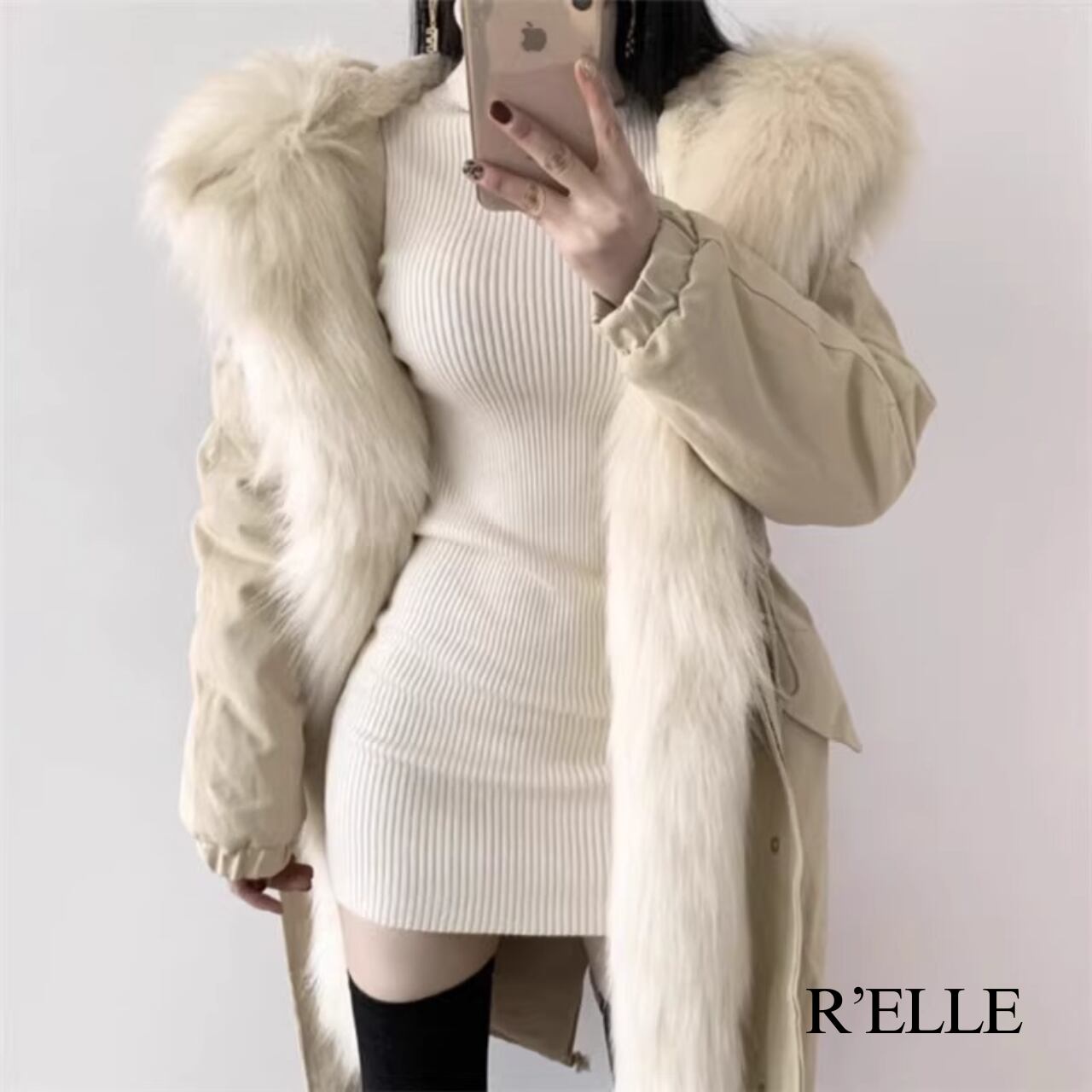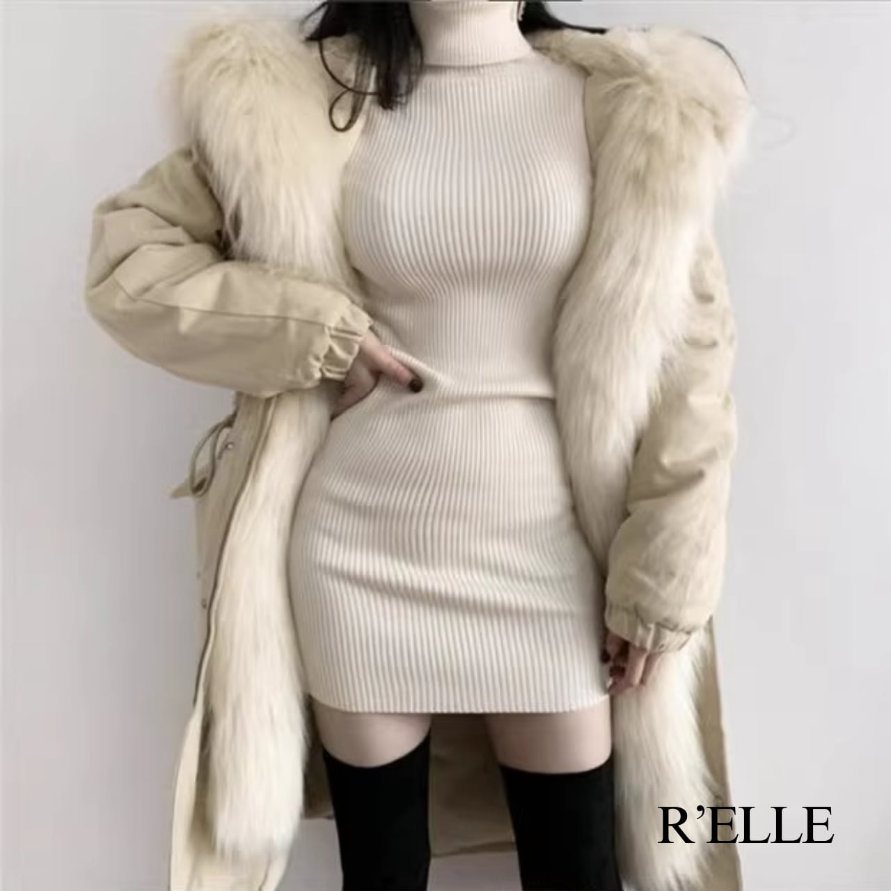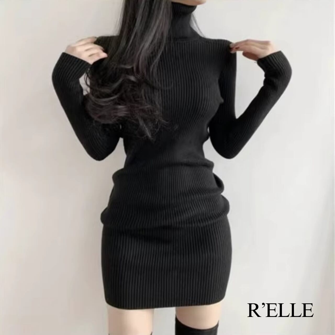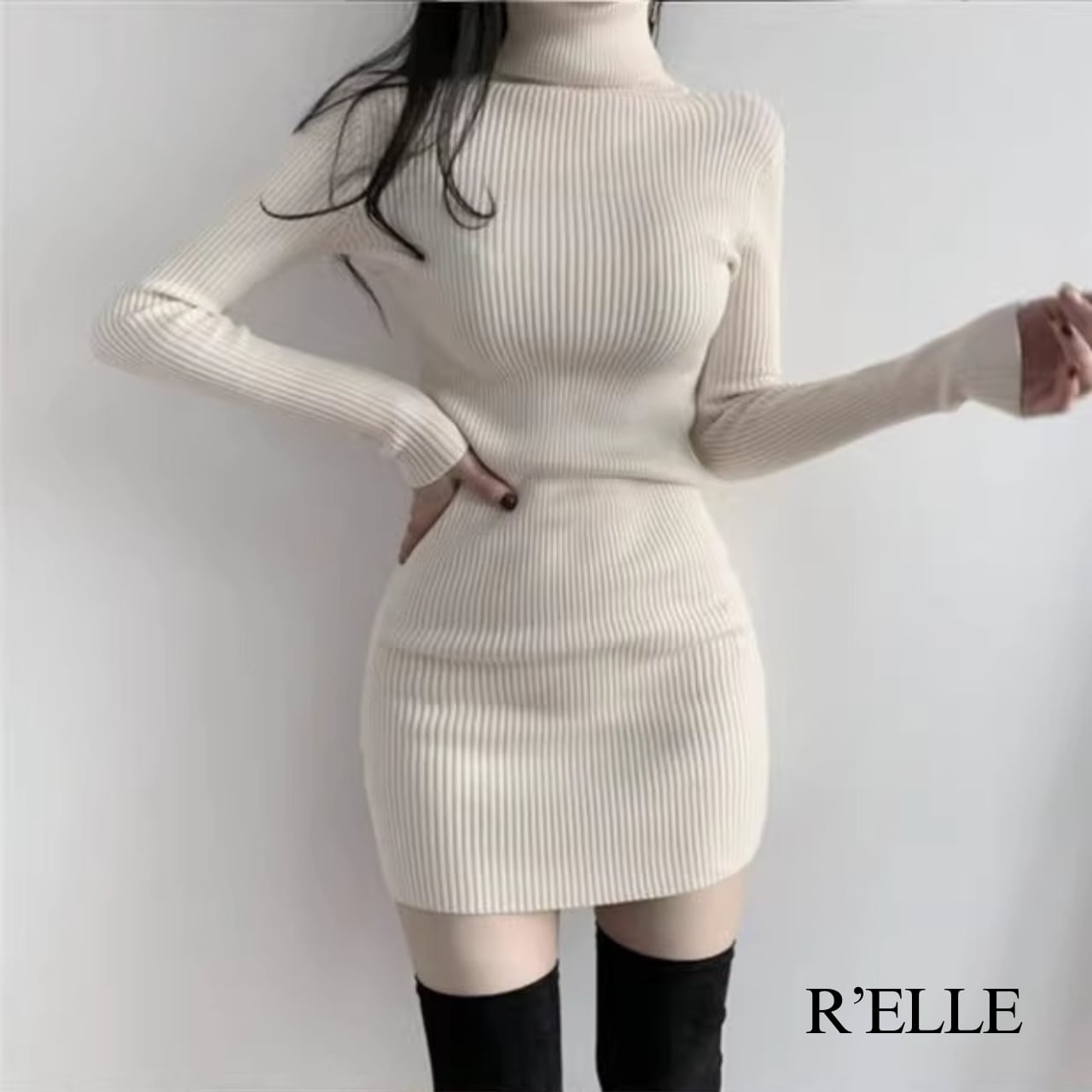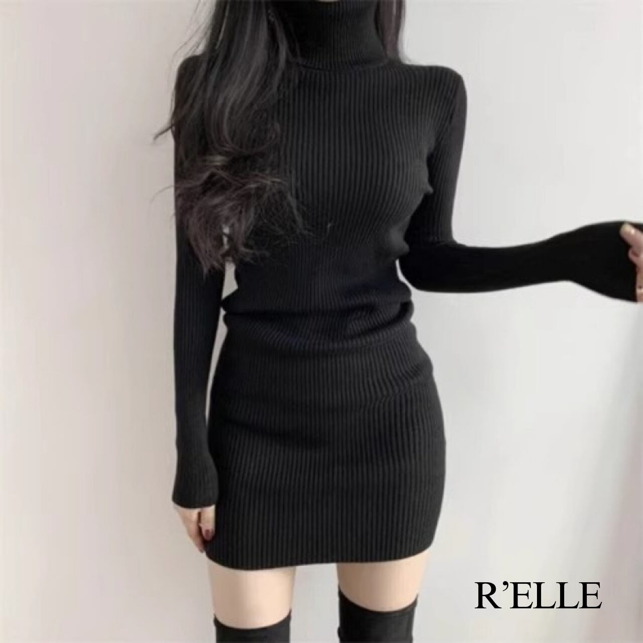リブニットタイトミニワンピース