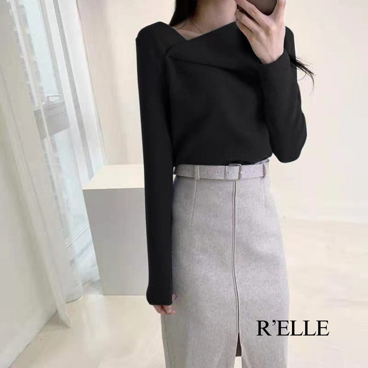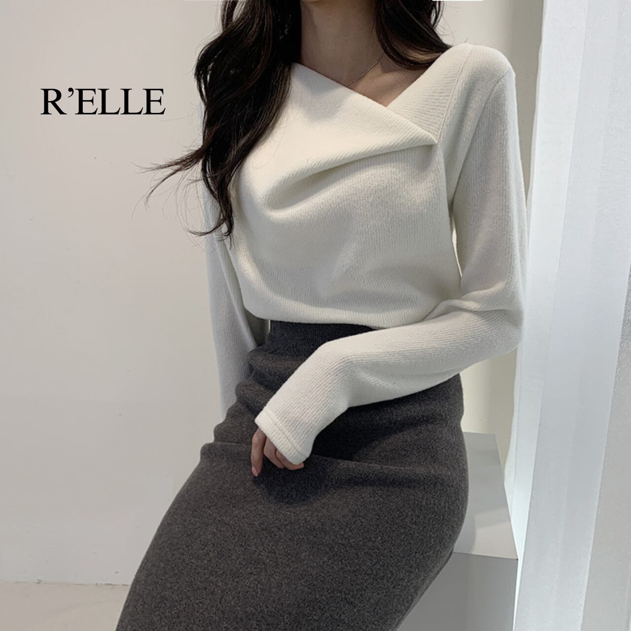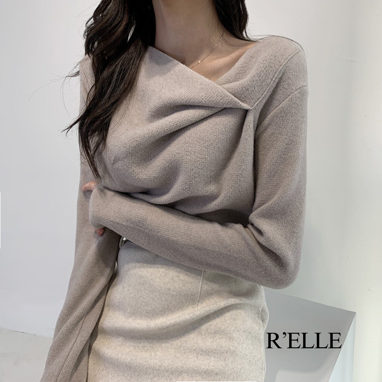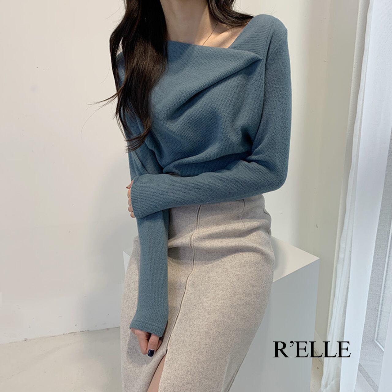 アシンメトリー カシュクール風 ニットプルオーバー