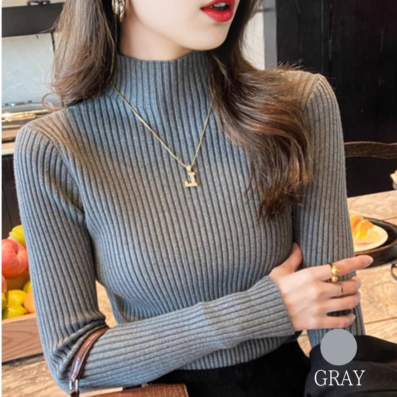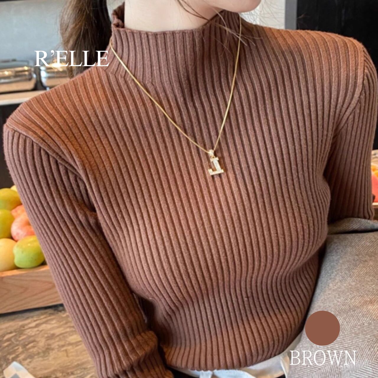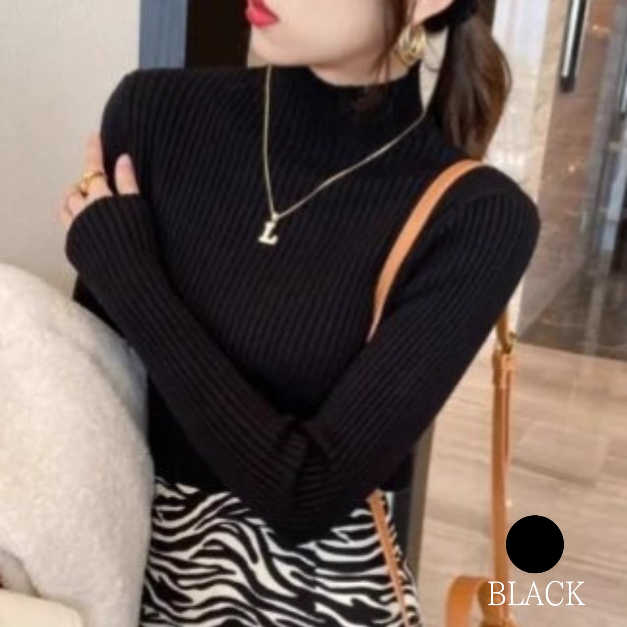 タートルネック リブニット