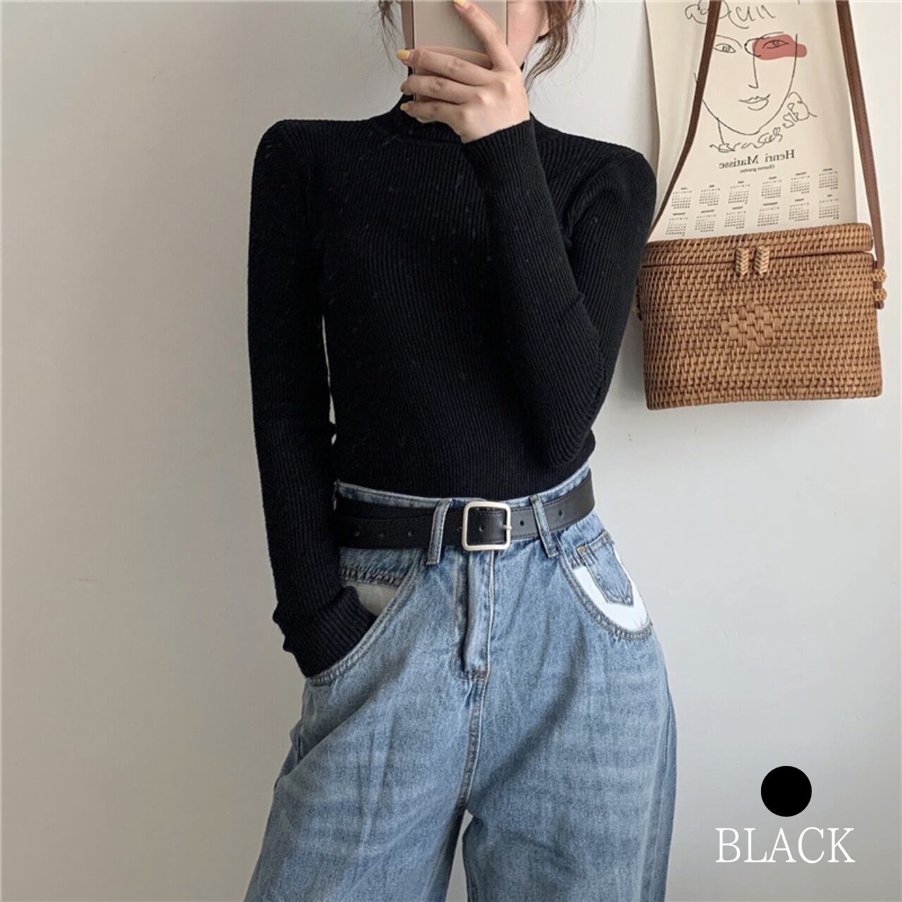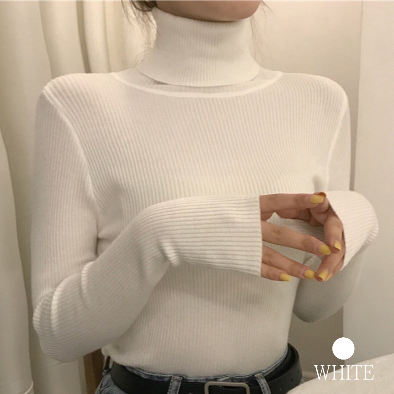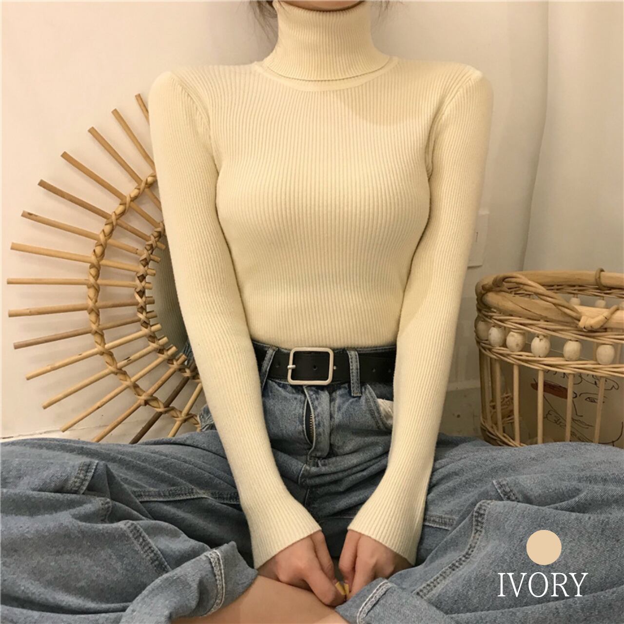 タートルネック リブニット