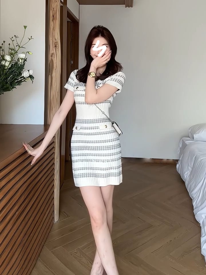 フロントボタン・エレガントタイトニットワンピース