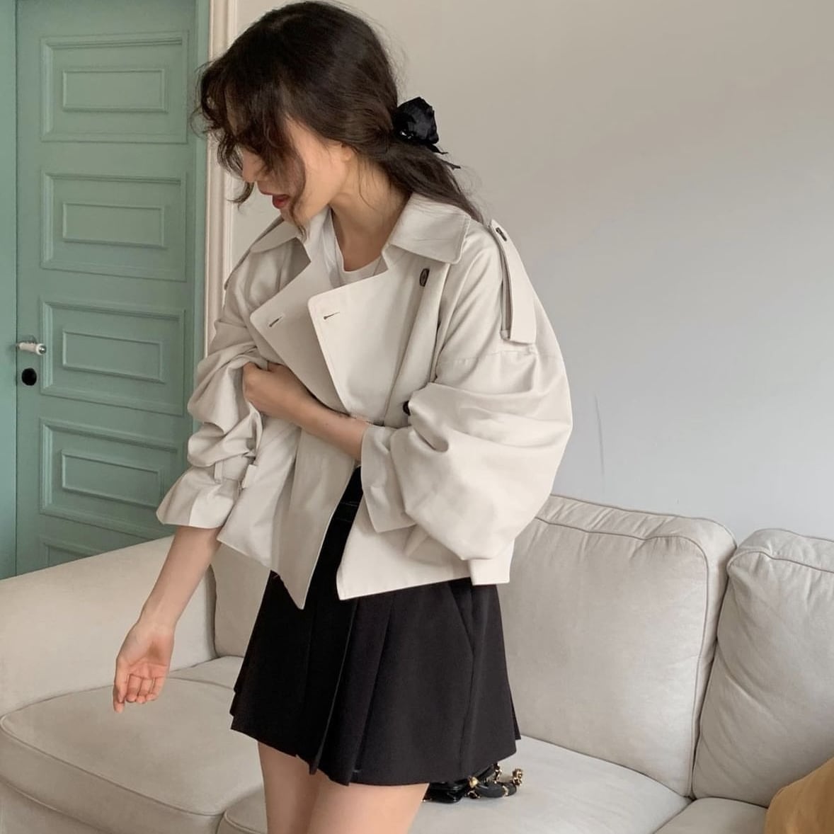 フレンチヴィンテージ・ショートトレンチ・ボリュームスリーブジャケット
