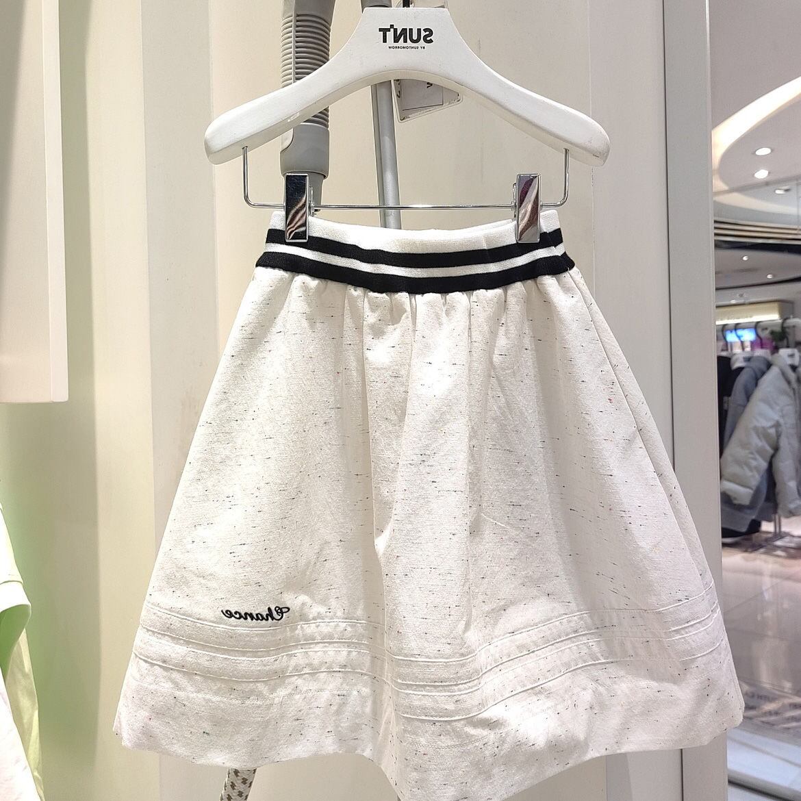 ベストは、黒の配色襟とシルバーボタンがクラシカルなアクセントに。スカートは、ウエストの黒ラインと裾のタック加工でシルエット美抜群。控えめなロゴ刺繡が上質さを引き立てます。
