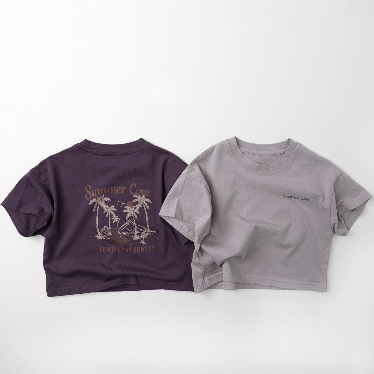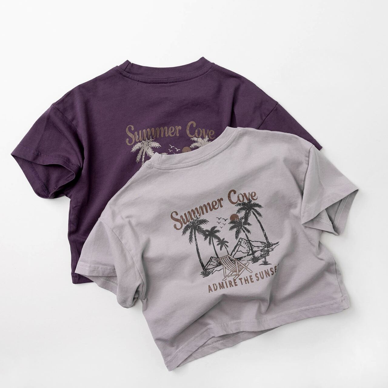 リゾート気分をぎゅっと詰め込んだ、バックプリントが主役のクロップドTシャツ。